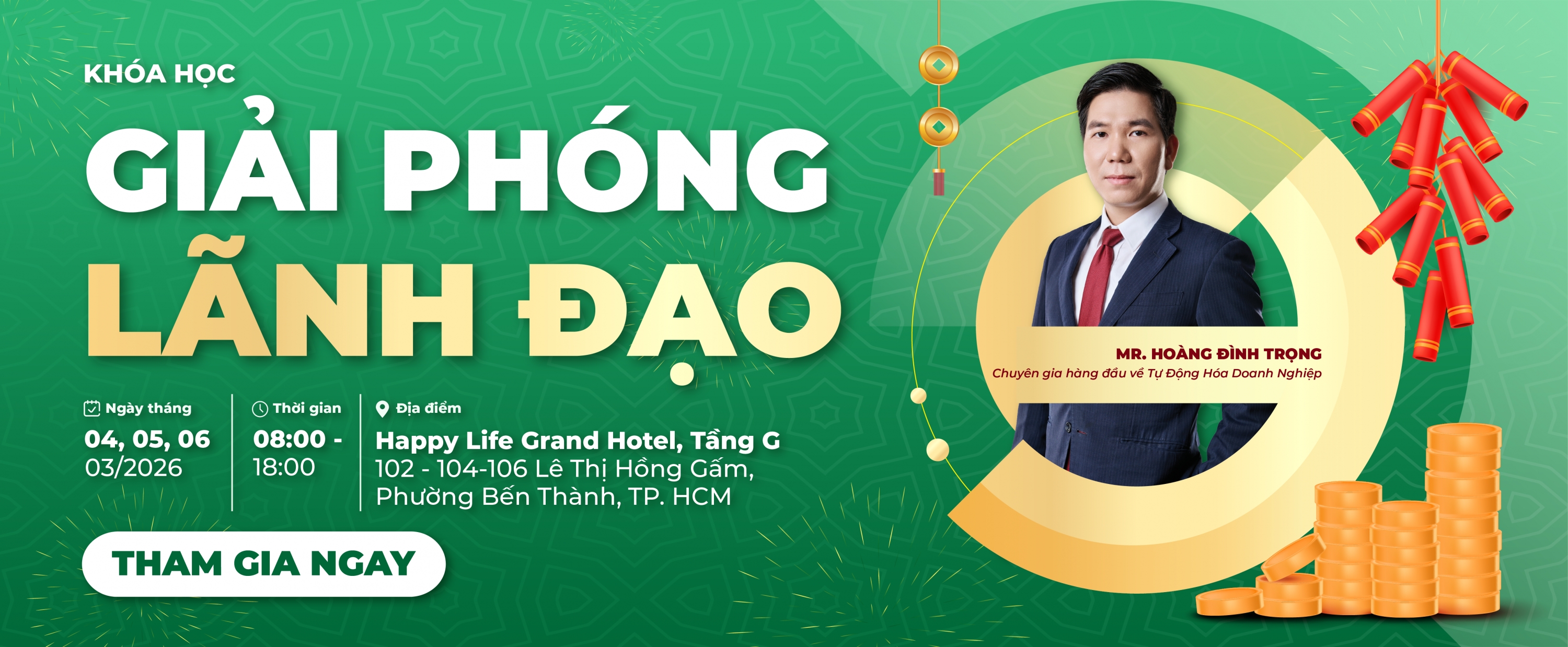 CEO, Chủ Doanh nghiệp Hải Phòng ơi! Năm 2025 sắp hết, bạn đã chuẩn bị gì cho "cơn bão" sau Tết? Đến với chương trình Giải phóng lãnh đạo để Sở hữu Bí kíp 3 Bước Giao việc khiến nhân viên chủ động, nhiệt tình nhận việc. Công thức giữ chân nhân tài và tăng cam kết bằng việc xây dựng Hệ thống Văn hóa và Tối ưu hóa nguồn lực.